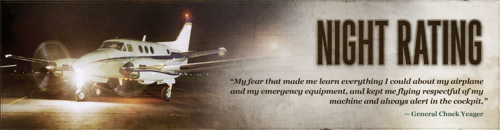 The Night Rating allows you to fly all single/multi engine aircraft that are classified as non-high performance during night hours under Visual Flight Rules and Visual Meteorological Conditions.