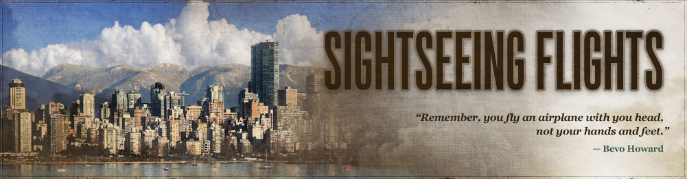 This scenic tour departs Langley towards the northwest overflying Port Moody towards Burrard Inlet we'll continue westward along the north shore until Point Atkinson then turning towards the mouth of false creek, beautiful Stanley Park and downtown Vancouver will be off the left side of the aircraft. From there will follow the south shore of Burrard Inlet towards the Fraser Valley and our destination of Langley.